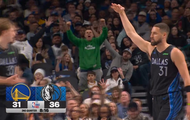 乐鱼线上服务-手起刀落!克莱追身三分轰进 帮助独行侠打停勇士